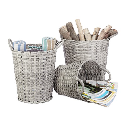 Relaxdays Förvaringskorgar set om 3, runda förvaringslådor, flätade korgar, förvaringslådor, 3 storlekar, grå