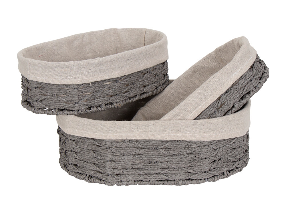 Flätade korgar - Set med 3 - Grå förvaringskorgar med bomullsöverdrag