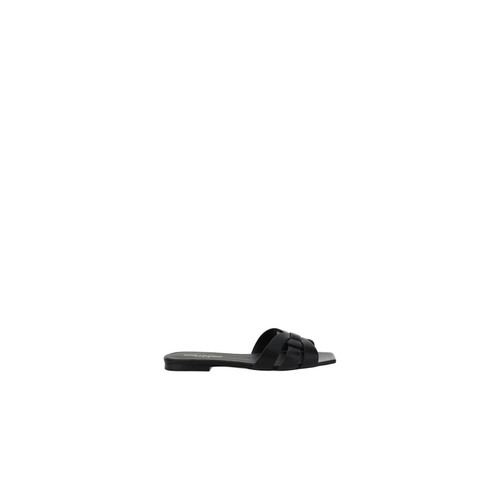 Saint Laurent, Skor , Dam, 36 1/2 EU, Läder, Flätade Läder Slide Sandaler
