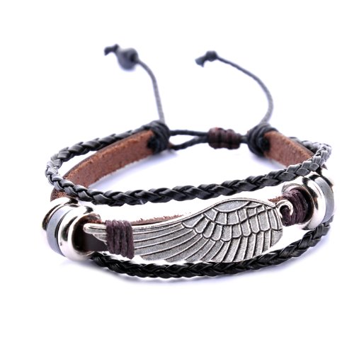 COOLSTEELANDBEYOND Horisontell sida sida tre rader kors armband - flätat läderarmband för män och kvinnor, One Size, Läder, ej tillämpligt