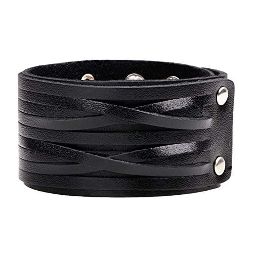 Svart läderarmband armband, handgjort flätat läderarmband armband, punk brett läder manschettarmband, vintage läderarmband för män, ingen ädelsten