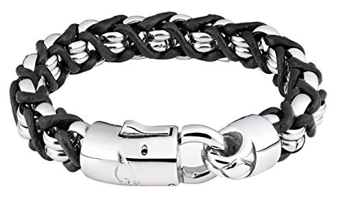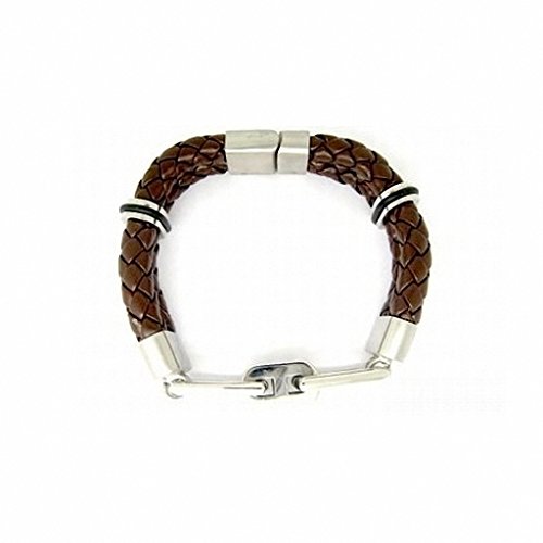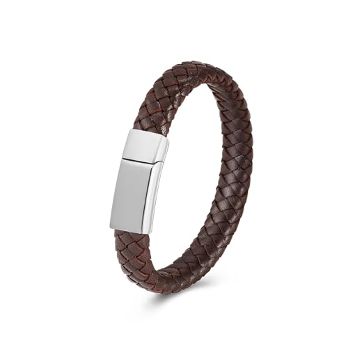 Casisto.J Läderarmband, herr, armband i läder för män, rostfritt stål, gravyr, svart, brun, flätat, med magnetlås, anpassningsbart, 21, Rostfritt stål