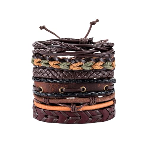 dinghaole 6 st läderarmband, punk flätat män och kvinnor reparmband, justerbart mode läderarmband, vintage armband wrap set för män kvinnor träpärlor armband, En storlek, Läder, nej