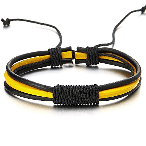 COOLSTEELANDBEYOND Män Kvinnor Gul Svart Flätat Läder Bomull Armband Armband Armband Omslagsarmband, Justerbart