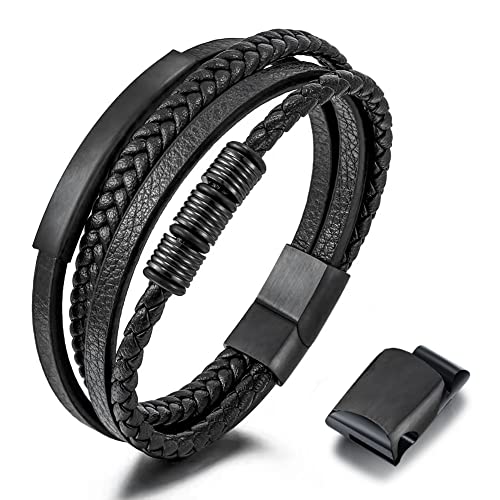 Casisto.J Läderarmband för herrar, armband i läder för män, rostfritt stål, gravyr, svart, brunt och blått, flätat, med magnetlås, anpassningsbart, 20, Läder