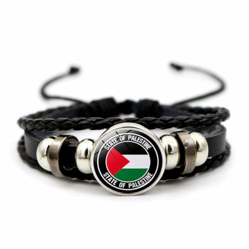 CAREOR Flätat armband med palestinsk flagga, mångsidigt vävt pärlarmband, läderarmband med palestinsk flagga, smyckespresent för män och kvinnor, 18cm (7.09 inches), Glas Polyuretan Plast Läder