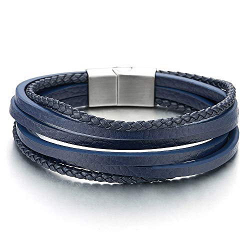 Mäns kvinnor multisnöre marinblå flätat läderarmband armband med magnetiskt stållås, Läder, Ej tillämpbar