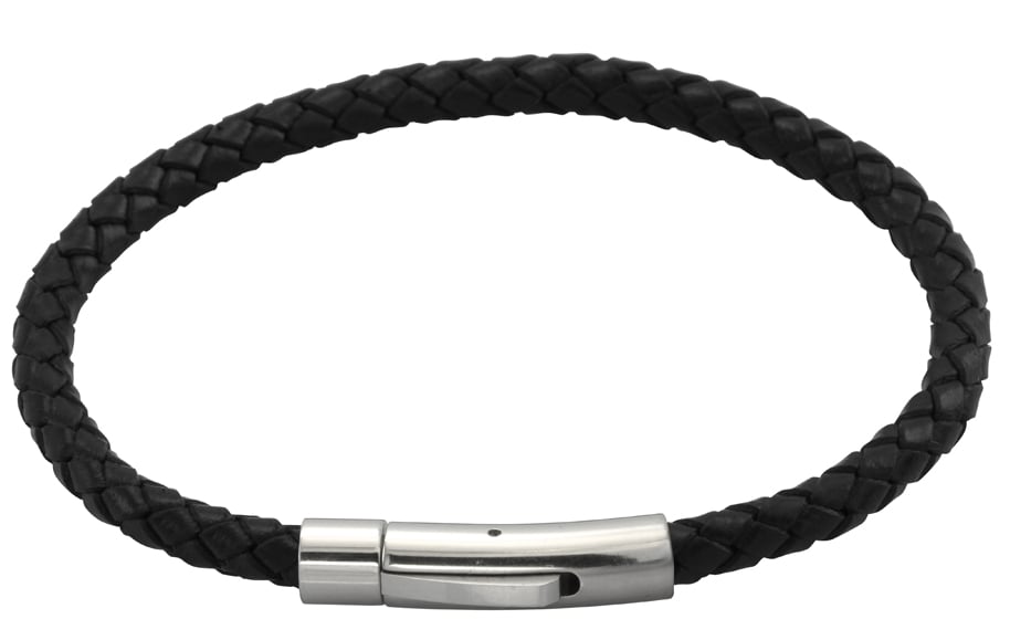 Zippo-armband i rostfritt stål – För herr och dam – 20 cm – Flätat stål med läder – Svart, silver – Högglanspolerat – Krokspänne