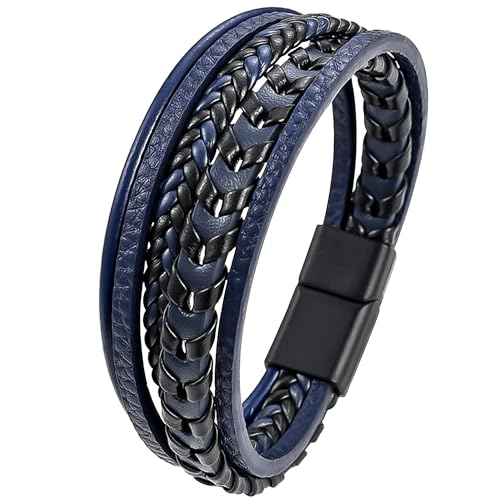 COOLSTEELANDBEYOND För män kvinnor flertrådigt marinblått flätat läderarmband armband med magnetiskt lås i stål, 21 cm, Läder, Ej tillämpbar