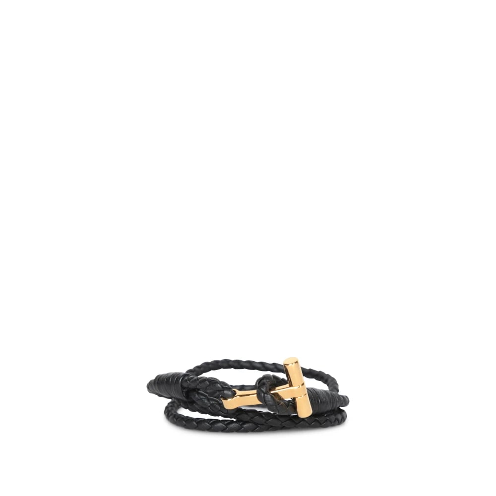 Tom Ford, Accessoarer , Herr, L, Läder, Flätat läderarmband med guldtonat logotyp