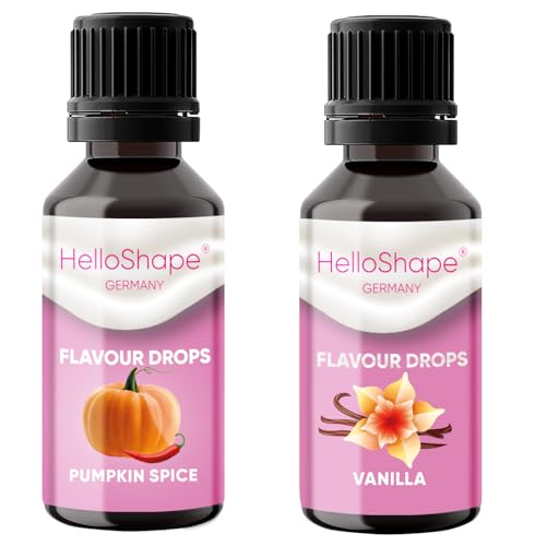 Hello Shape Flavour Drops sockerfria 30 ml – Pumpkin Spice & vanilj | Smakdroppar UTAN kalorier för sötning med doseringshjälp| Vegan | För naturlig yoghurt, gröt eller kvarg