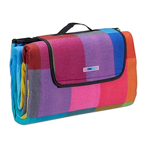 Relaxdays XXL picknickfilt, 200 x 200 cm, fleece strand och campingmatta, isolerad och vattentät, med handtag, flerfärgad pläd