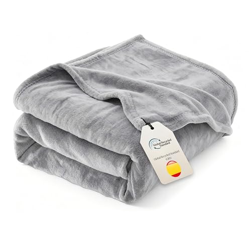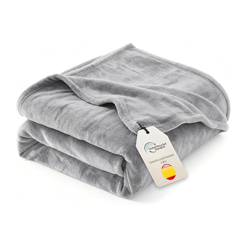 Filt Pläd i Fleece 150 x 200 cm, Enkelsäng Flanell - Filt Certifierad enligt Oeko-TEX®, Fleecefilt för Soffa och Säng, Överlakan Flanell, Mjuk Filt-Grå