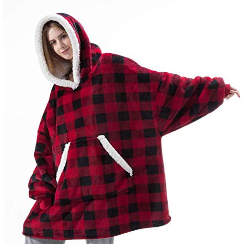 Överdimensionerad filthuvtröja med stor ficka, ultramjuk teddy sherpa fleece, huvtröja för kvinnor män barn, Pläd, en storlek