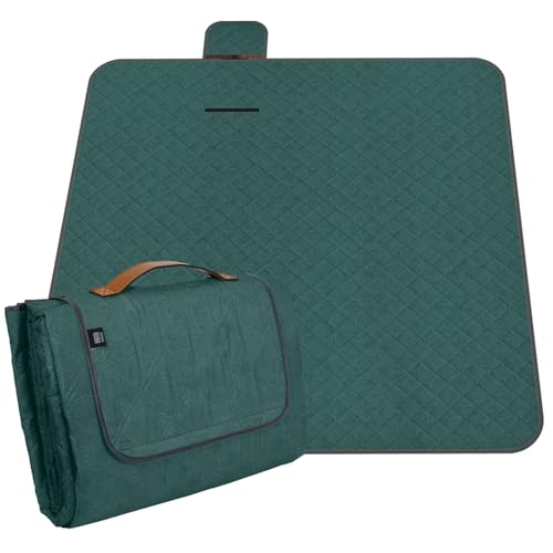 PERLETTI Picknickfilt Vattentät för Vuxen Familjer 200x200 cm - Fleece Strand och Campingmatta Utomhusfilt Isolerad med Handtag - Flerfärgad Pläd Vandring Parker (Gröna Blad, 200x200)