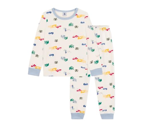 Petit Bateau Barn pyjamas i fleece med tryck stugor, Mjölk/Multico, 12 �r