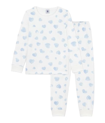 Petit Bateau Hjärttryck fleece barn pyjamas, Marshmallow/Terkuit, 6 �r