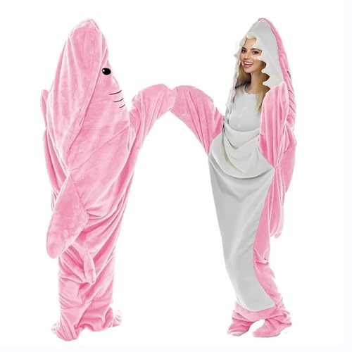 Haj filt huvtröja haj filt sovsäck för vuxna - flanell haj filt supermjuk mysig haj sovsäck svans bärbar fleece filt cosplay haj filt gåvor (rosa, 210 cm)
