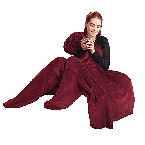 CelinaTex fluffig gosig filt med fötter strumpor XL 170 x 200 cm bordeaux strumpfilt fotvärmare mikrofiber fleece Öko-Tex Footy