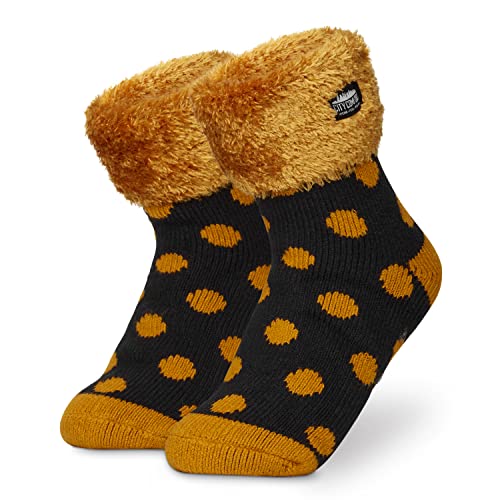 CityComfort Tofflor strumpor kvinnor tonåringar - fluffiga strumpor Halkfri varm fleece One Size Lounge Wear - Presenter för kvinnor (Gula prickar)