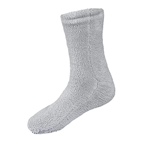 Sleepdown Dam teddy fleece strumpor unisex supermjuk mysig vardaglig vinter varm termisk UK-storlek, Grå, Medium-Large