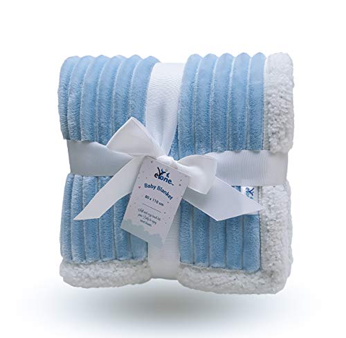 Pojke eller flicka stor supermjuk baby lyxig sherpa fleece-filt för barnsäng, bilsäte, barnvagn, perfekt present (blå, 80 x 110 cm)
