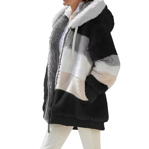 Generisk teddyfleece jacka dam, teddy fleecejacka dam teddyjacka dam fleecejacka varm tjock fritid tvåvägs dragkedja vinterjacka färgblock teddy jacka med fickor vinterrock, Bw1, L