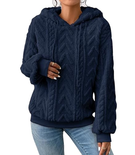 Zetieny Fleecejacka huvtröja dam huvtröja teddy fleece pullover överdimensionerad sweatshirt höst vinter varma toppar med ficka, Marinblått Xsp, M