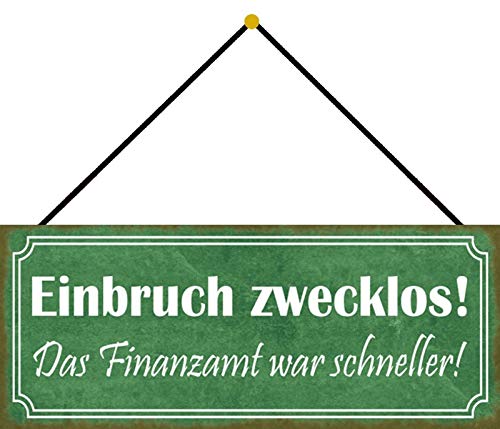 Skattzmix brott utan problem finansiell byrå metallskylt 27 x 10 cm väggdeko med snöre plåtskylt, plåt, flerfärgad, 27 x 10 cm