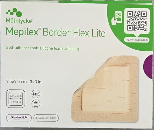 Mepilex Border Flex Lite 7,5x7,5cm, allt-i-ettförband, fyra lager, flexteknolog, 5 styck