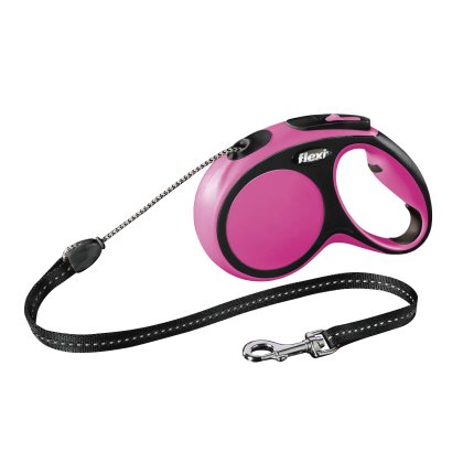 Flexi New Comfort Retractable Tape Dog Leash Medium 16-Foot Pink/Grey 55-lb. Dog