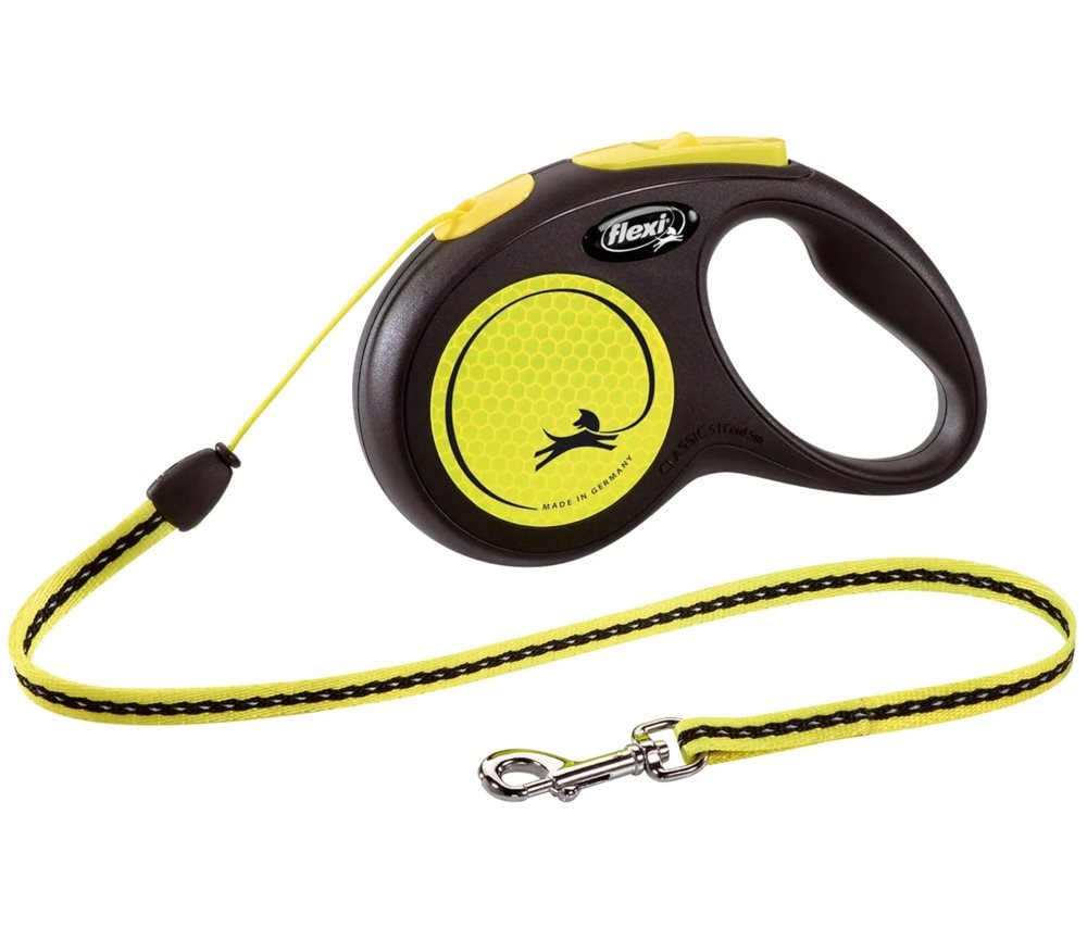 Flexi New Neon Retractable 16' Dog Leash Tape, Small, Black/Neon