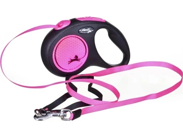 Flexi New Neon Bånd S, 5M, 15Kg, Black/Neon Pink