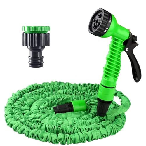 15 m flexibel trädgårdsslang bevattning, flexibel vattenslang med 7 funktioner dusch och snabbadaptrar, stretchig trädgårdsbyxor, slang för trädgårdsbevattning, husdjur, biltvätt, gräs (grön)