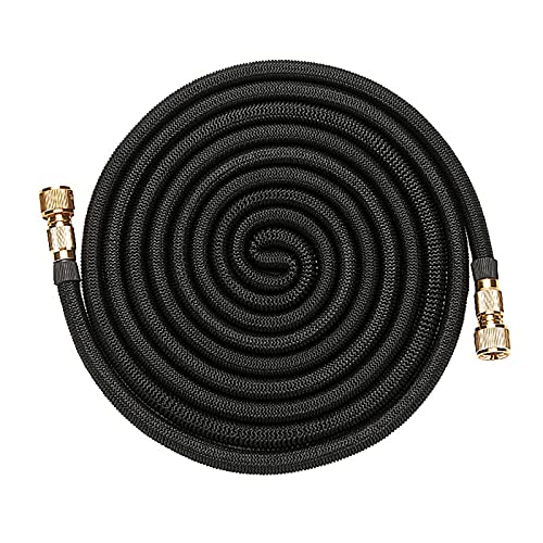 VOUNOT Flexibel trädgårdsslang 15 m, flexibel vattenslang töjbar med 10 sprayfunktioner, snabbadaptrar och väggfäste, svart