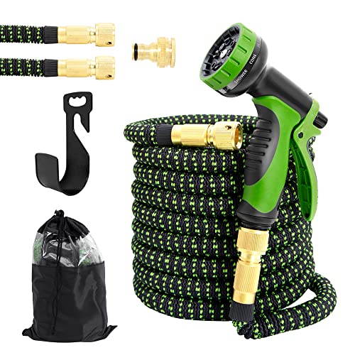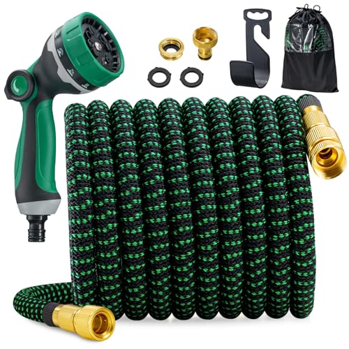 VOUNOT Flexibel trädgårdsslang 30 m, flexibel vattenslang töjbar med 10 sprayfunktioner, snabbadaptrar och vägghållare, grön