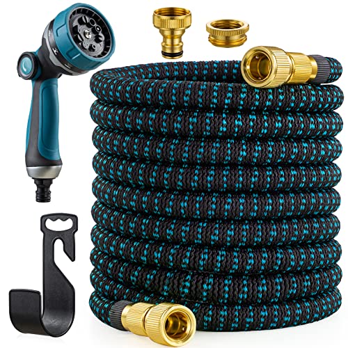 JUNEBOW Expanderbar trädgårdsslang 30 meter, vattenslang med 10 funktionsmunstycke, lätt flexibel slang med 3/4 tum solida beslag och 3-lagers latexkärna