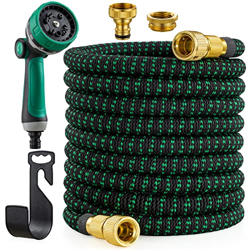 PLLYPE Flexibel trädgårdsslang 15 m/50 FT, flexibel vattenslang, stretchig, utdragbar trädgårdsslang, flex med 8 funktionsmunstycken, slang flexibel för trädgård husdjur biltvätt (svart)