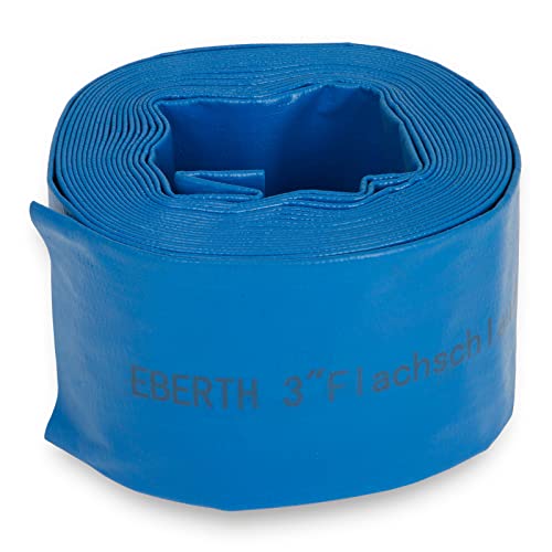 EBERTH 3 tum platt slang trädgårdsslang för pumpar i 10 m längd, 3 tum, 76 mm diameter, flexibel, motståndskraftig PVC, industrislang, vattenslang för bevattning, i blått