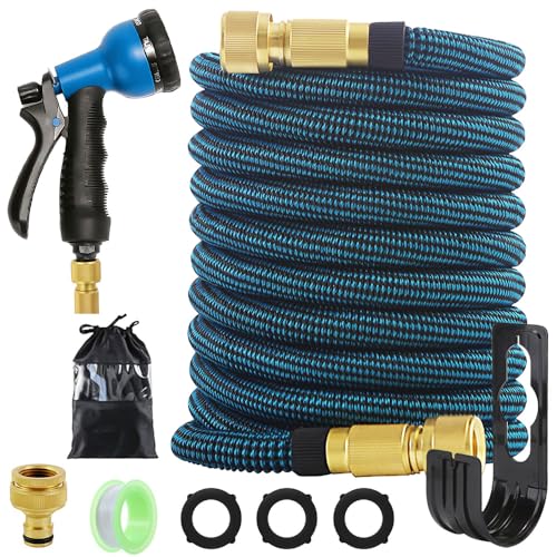 PLLYPE Flexibel trädgårdsslang, vattenslang 15 m/50 m, flexibel vattenslang med 3/4 tum och 1/2 tums solida mässinganslutningar, lätt flexibel slang med 10 lägen för utomhusbruk