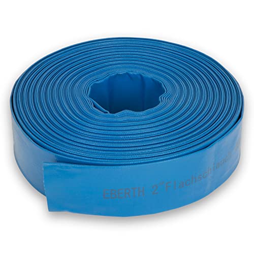 EBERTH 2 tum platt slang trädgårdsslang för pumpar i 40 m längd, 2 tum, 52 mm diameter, flexibel, motståndskraftig PVC, industrislang, vattenslang för bevattning, i blått