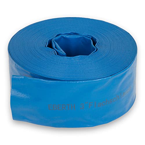 EBERTH 3 tum platt slang trädgårdsslang för pumpar i 20 m längd, 3 tum, 76 mm diameter, flexibel, motståndskraftig PVC, industrislang, vattenslang för bevattning, i blått