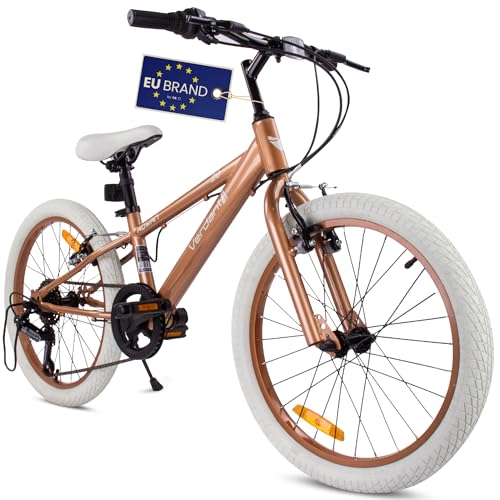Verdant Bike Barncykel för pojkar 20 tum hjulstorlek att välja mellan 6 växlad Shimano-cykel för barn 6 till 10 år höjdjusterbar flickcykel (Cappuccino)