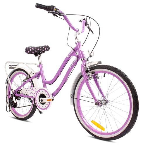 Heart Bike Flickcykel för en flicka 20 tum, 6 till 10 år, växlar Shimano, barncykel för pojkar (Lila)