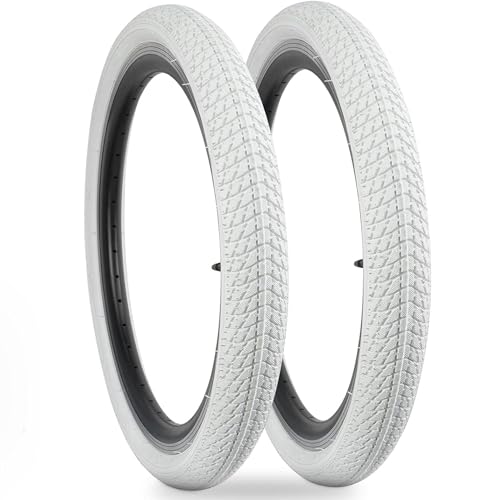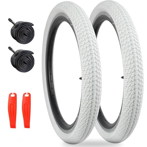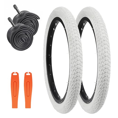 ZUKKA 2-pack 20 tum 20 x 1,75 vita cykeldäck rock 47–406 och 2-pack 20 tums slang för MTB, barncykel, studentcykel, flickcykel, trehjuling, vit