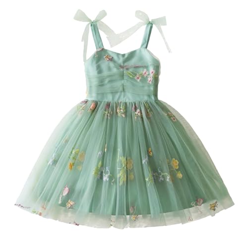 JiAmy Flickklänningar ribbade stickade tyllklänningar paljett vår flygande ärmar regnbåge barnklänning för 1-6 år gammal, Grön rem blomma, 12-24 månader