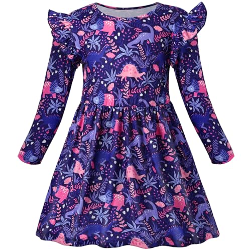 VASCHY Flickklänningar, 3–10 år korta långa ärmar tryck prinsesärmar klänning sött mönster bomull vardagsliv för småbarn barnkläder, Dinosaur-cx123, 5-6 år
