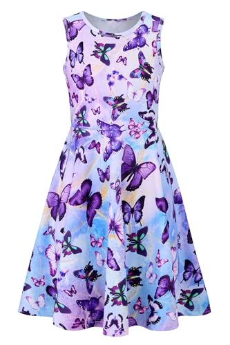 Belovecol Flickklänningar Lila Butterfly Sommar A-Line Swing Crew Neck Skjorta Klänning 4-5 år