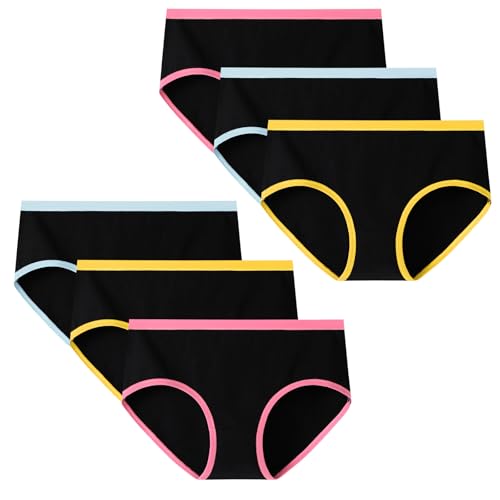 Anntry Flicktrosor mjuk bomull underkläder medium midja solida trosor för tonåringar, 6 svart, 10-12 år