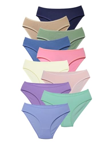 ALYA UNDERWEAR Flicktrosor av bomull, mjuka och bekväma flicktrosor, förpackning med, 10 stycken, (Mixed Color, X28, 12-13 Years)